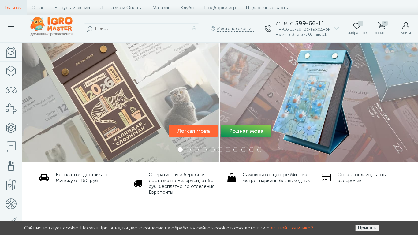 | SEO-описание | Лучшие настольные игры всех времен в интернет-магазине Igromaster.by. Купить настольную игру по самой выгодной цене. Акции и скидки |