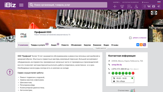 | Название / Заголовок | Профикей ООО - Ремонт легковых автомобилей, микроавтобусов, ТО. . 220036, Минск, , Карла Либкнехта, 70А |