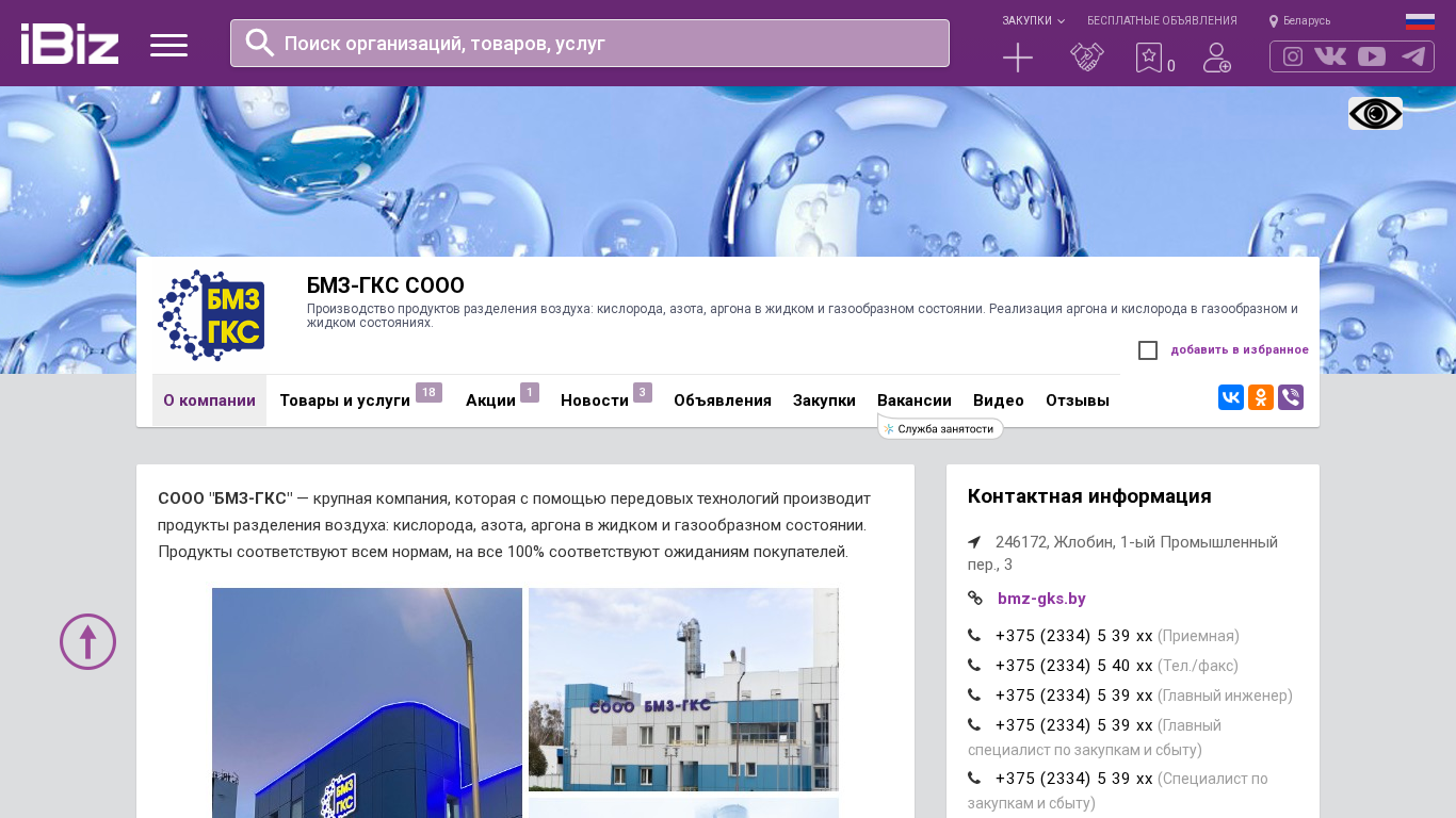 | SEO-описание | БМЗ-ГКС СООО - Производство продуктов разделения воздуха: кислорода, азота, аргона в жидком и газообразном состоянии. Реализация аргона и кислорода в газообразном и жидком состояниях.. Схема проезда, контактные телефоны, адрес компании БМЗ-ГКС СООО. 246172, Жлобин, , 1-ый Промышленный пер., 3 |