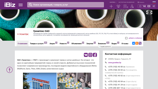 | AI-анализ | The web project "Gro Nina Tex OAO" is a textile manufacturing company based in Grodno, Belarus. Established in 1967, it specializes in the production and sale of yarns and sewing threads. With modern equipment from leading European manufacturers like Reiter, Shlafhorst, Savio, Thies, SSM, and Zinzer, the company ensures high-quality production. Its extensive product range includes various types of yarns for knitting, weaving, and sewing, such as hank, coned, and bobbin yarns, as well as specialized technical threads and armored threads for industrial applications. Gro Nina Tex OAO is the only producer of sewing threads for chloroprene rubber in Belarus. The company also offers event planning services for banquets and other events at its in-house ban |