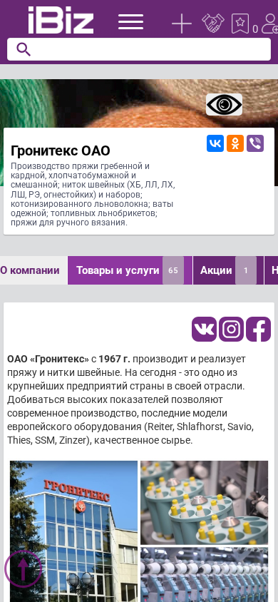 | Название / Заголовок | Гронитекс ОАО - Производство пряжи гребенной и кардной, хлопчатобумажной и смешанной; ниток швейных (ХБ, ЛЛ, ЛХ, ЛШ, РЭ, огнестойких) и наборов; котонизированного льноволокна; ваты одежной; топливных льнобрикетов; пряжи для ручного вязания.. 230005, Гродно, , Горького, 91 |