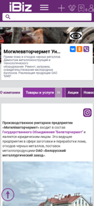 | AI-анализ | The website is for Могилеввторчермет Унитарное предприятие, a production enterprise located in Могилев, Belarus, at Липовая аллея, 4. The company specializes in the acceptance and processing of scrap and waste black metals, as well as the dismantling of metal structures and technological equipment. Additionally, they offer services for the repair, filling, and certification of oxygen tanks, as well as the sale of products from ОАО ''БМЗ''. The enterprise is part of the State Enterprise "Белвторчермет" and provides accessible prices and quality services in the fields of second-hand raw materials and chemical industry. The website includes sections for company information, products and services, and contact details. |