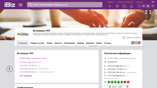 | Название / Заголовок | Иголенька ЧУП - Строительные материалы Продажа. Доставка. Разгрузка. Блоки. Кирпич. Окна. Двери. Кровля. Гипсокартон и комплектация. Утеплитель. Напольные покрытия. Перегородки. Грунтовки. Канализация. Краски. Фундамент. Благоустройство. Гидроизоляция. Натяжные потолки. . 231300, Лида, , 1-ый Невского пер., 2 |