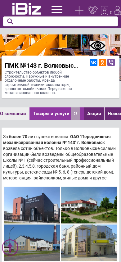 | Название / Заголовок | ПМК №143 г. Волковыск ОАО - Строительство объектов любой сложности. Наружные и внутренние отделочные работы. Аренда строительной техники: экскаваторы, краны автомобильные. Передвижная механизированная колонна.. 231900, Волковыск, , Брестская, 30 |