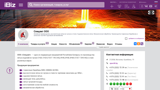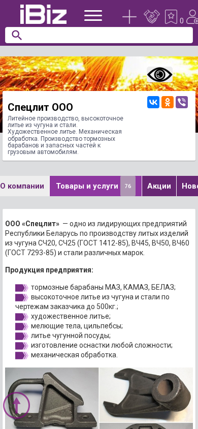 | AI-анализ | This website is a Belarusian business specializing in metal casting and mechanical processing. The company, Sпецлит ООО, offers high-precision casting using chrome-manganese steels (SCH20, SCH25, VCH45, VCH50, VCH60) and other metals, as well as artistic casting. Their main products include castings for brake drums of MAZ, KAMAZ, and BELAZ trucks, as well as custom castings based on client blueprints up to 500kg. They also manufacture milling bodies, cylinders, and cast iron cookware, and offer the production of complex molds and mechanical processing. Their products find demand in industries such as machinery manufacturing, transportation, and agricultural machinery. The company utilizes advanced techniques for producing precise castings, including the use of gas |