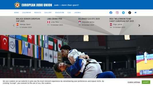 | AI-анализ | This website is the official European Judo Union (EJU) platform, providing news, calendar, results, gallery, education, EJU members, organisation, sponsors, and documents related to European Judo Championships, Cups, and Training Camps. The title is "Home - European Judo Union," and the description is blank. The keywords include "European," "judo," "championships," and various specific events. The top_words indicate numerous European Judo events in October and November 2025, including seniors, juniors, cadets, veterans, and adaptive judo championships. The domain is eju.net. |