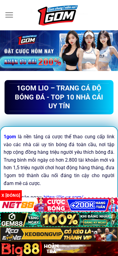| Название / Заголовок | 1Gom Lio – Trang Cá Độ Bóng Đá - Top 10 Nhà Cái Uy Tín 2025 |