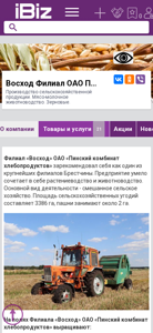 | AI-анализ | The web project "Voskhod Filial OAO Pinskij kombinat hleboproduktov" is a Belarusian agricultural enterprise specializing in the production of agricultural products, focusing on meat-dairy livestock farming and cereals. The company, located at 225761, Sovietskaya 5, Konchitsy d., Pinsk district, offers a variety of farm products. The website provides information on their offerings, contact details, and operating hours. The main agricultural activities include cultivation of oat rapeseed, wheat, triticale, corn, and various grain and legume crops. The facility is equipped with modern farming equipment, ensuring high-quality products and flexible pricing. Visitors can also find details on how to reach the location. |