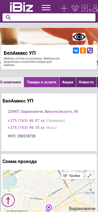 | Название / Заголовок | БелАмикс УП - Мебель оптом и в розницу. Мебельная фурнитура и комплектующие для мебели.. 225407, Барановичи, , Вильчковского, 56 |