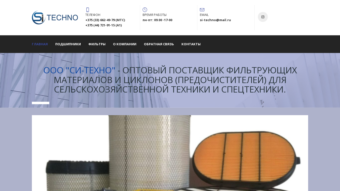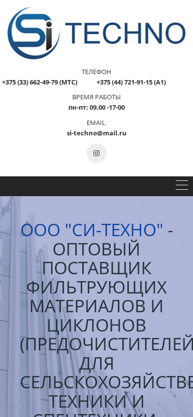 | AI-анализ | This website is SI-Techno Brest, a supplier of spare parts, filters, and bearings for agricultural machinery located in Brest, Belarus. The company specializes in providing filters from various manufacturers such as Goodwill, Kentek, Donaldson, Mann-Filter, Hengst, Kolbenschmidt, Filtron, Bald Win, Fleetguard, and Difa. SI-Techno Brest offers a wide range of filters for agricultural machinery, and their team has the necessary technical knowledge to help customers find the right filters based on original numbers, analogs, technology, and technical parameters. The company prides itself on delivering high-quality replacement parts and adhering to strict delivery deadlines. SI-Techno Brest can be reached via phone at +375 (33) 662-49-79 (MTS) or +375 ( |