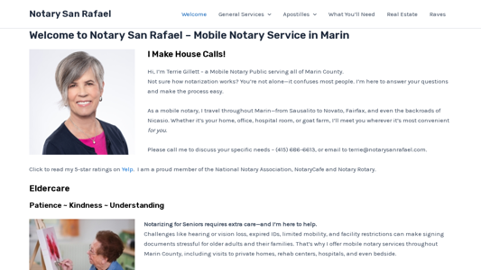 | SEO-описание | The BEST Mobile Notary service in Marin; Power of Attorney, Loan Signing, Apostille, Estate documents; I drive to YOU! Hospital visits OK. 415-686-6613. |