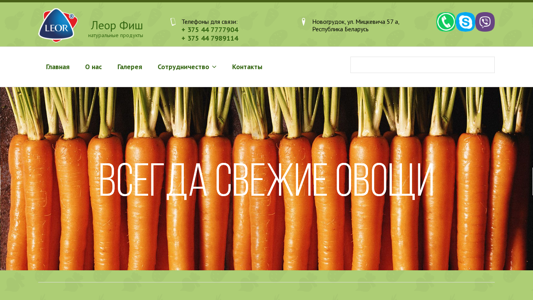 | AI-анализ | This website is for the Belarusian business "Леор Фиш" (Leor Fish), offering natural products with a focus on fresh vegetables. The title of the website is "Леор Фиш - лучшие продукты к вашему столу" (Leor Fish - the best products for your table). The description mentions the sale of various vegetables, including carrots, beets, cabbage, and potatoes. The keywords include "2016," "August," "vegetables," "potatoes," "fresh," "Belarus," "carrots," "beets," "cabbage," "potatoes," "high quality," "practical," and "packaging." The website also mentions a cooperative called "Белкоопсоюз," an auction, and a goal to plan to grow and sell |