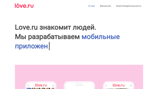 | AI-анализ | language: ru This website, Love.ru, is a social networking platform for meeting new people. It has over 50 million registrations, making it the third most popular site in Russia. Love.ru offers mobile applications for both Android and iOS devices, with over 2 million monthly active users swiping and connecting daily. The site and apps were first launched in 2008 and have since grown to become a leading destination for thousands of love stories. Love.ru operates honestly and does not use hidden payments or bots. The team uses modern technologies to ensure a seamless user experience. Users can apply for jobs with the company and contribute to the project's development. The site and apps continue to improve based on user feedback. Check them out for yourself! Love.ru, Love.ru Android, Love.ru iOS, Love.ru AppGallery, Love.ru GalaxyStore, Love.ru RuStore |