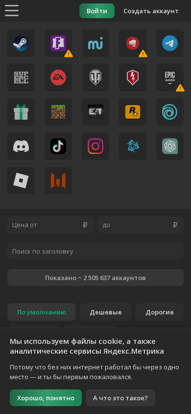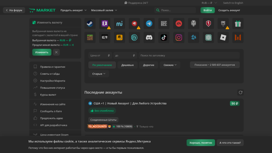 | AI-анализ | --- The web project Lolzteam Market is a safe trading platform for affordable gaming accounts. It offers cheap Steam, Fortnite, miHoYo, Riot Games, Telegram, Supercell, EA (Origin), World of Tanks, World of Tanks Blitz, Epic Games, Minecraft, Escape from Tarkov, Social Club, Uplay, Discord, TikTok, Instagram, Battle.net, and ChatGPT accounts. The site supports multiple currencies including RUB, ₽ UAH, ₴ KZT, ₸ PLN, zł USD, $, EUR, € GBP, £ CNY, ¥ TRY, ₺ JPY, ¥ BYN, Br, and BRL. The marketplace offers 24/7 customer support. The site uses cookies and analytical |