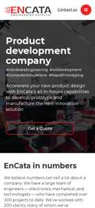 | AI-анализ | language: en The website is for EnCata, a product design and development company. The title of the website is "Product Design and Development Company | EnCata". The description of the website states that EnCata provides hardware engineering services for customers from all around the globe. The website offers information about the company's services, competencies, and solutions, including custom electronics development, firmware development, mechanical engineering design for manufacturing (DFM), computer simulations, product development and prototyping, hardware development, MVP development, industrial design, feasibility studies, rapid prototyping, low volume manufacturing, and services for various industries such as consumer & wearable, industrial IoT and automation, industrial equipment & tools, Agri Tech, robotics, food tech, healthcare, analytical & lab equipment. The website also includes a blog, an about us section, and a contact us page. The website |
