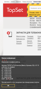 | AI-анализ | This website, titled TOPSET, offers replacement parts for mobile phones, laptops, and tablets. The description mentions various components such as glass, protective parts, cables, connectors, batteries, and accessories. The top keywords include words like glass, protective, cable, parts, USB, connector, charging, and components for laptops, tablets, and mobile phones. The website also provides information on delivery, payment, and warranty. It offers a search function for parts, a group for batteries and accessories, and sections for parts for gaming consoles, laptops, tablets, and phones, as well as memory cards, lamps, and equipment, instruments, and consumables. There are categories for mobile phones, cases, and various components, such as motherboards, vibration motors, back covers, system connectors, displays, and cameras. The website also sells various connectors, microphones, |