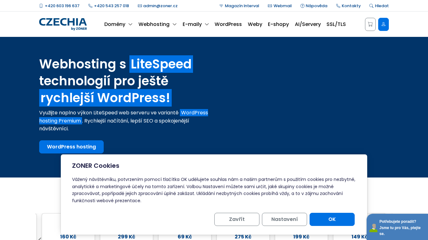 | SEO-описание | Náš webhosting je nejrychlejší na trhu a odladěný pro WordPress. Máme nejširší nabídku domén k registraci. Získejte 50% slevu na webhosting a HTTPS ZDARMA. |