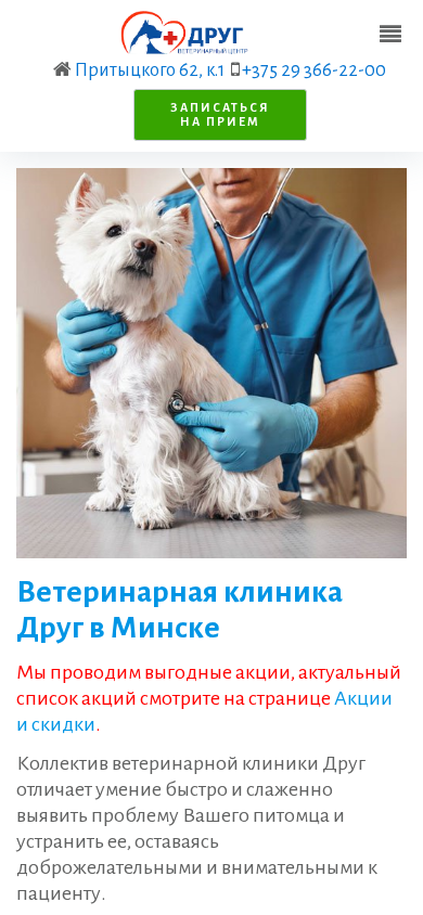 | Название / Заголовок | Ветеринарная клиника в Минске - Ветеринарный центр Друг |