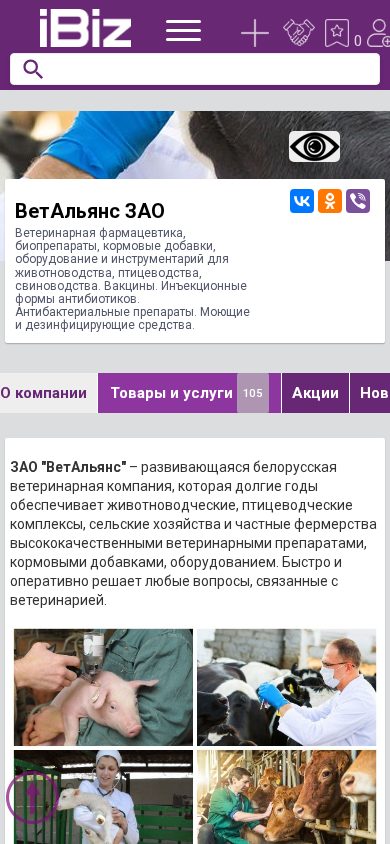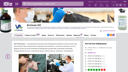 | AI-анализ | This online resource is a Belarusian business specializing in veterinary pharmaceuticals, bio-preparations, feed additives, equipment and instrumentation for livestock, poultry and swine farming. They offer vaccines, injection-form antibiotics, antibacterial preparations, and cleaning and disinfectant solutions. The company is located in Minsk at K. Libknecht Street, 66, office 107, 4th floor. Their offerings include various veterinary products and services, as well as decontamination and cleaning supplies for the food and processing industries. |