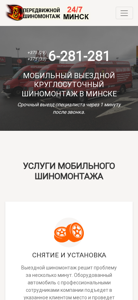 | SEO-описание | Передвижной шиномонтаж в Минске ✔️ выезд по Минской области.⏳ Приедем за 30 минут и решим проблему с колесами ☎️ 6-281-281. Звоните! |