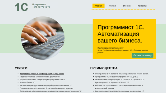 | AI-анализ | The portal "Programmist 1C - Minsk" is a professional 1C programmer's website based in Minsk, Belarus. The website offers various services related to 1C programming, including the development of simple configurations, data transfer, and the automation of business operations. The programmer has extensive experience in 1C, with over 15 years of work and over 20 years of programming experience. The portal caters to various 1C platforms, from 6.0 to 8.3. The programmer is skilled in typical 1C configurations such as UPP 1C 8, Trade 1C 8, Accounting 1C 8, and Payroll 1C 8 and 1C 7.7. The website also provides services for distributed databases and data conversions. The programmer has experience leading complex 1 |