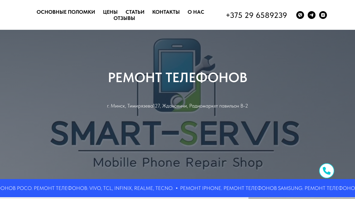 | SEO-описание | Ремонт телефонов в Минске – быстро, качественно, с гарантией!» 🔧 Профессиональный ремонт iPhone, Samsung, Xiaomi и других брендов 📱 Замена экрана, батареи, разъема, динамика и других комплектующих ⚡ Срочный ремонт – от 30 минут, бесплатная диагностика 💯 |