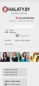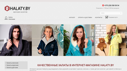 | SEO-описание | Мужские, женские и детские халаты в каталоге HALATY.BY - большой выбор и отличное качество по доступной цене. Доставка по Минске и всей Беларуси! |