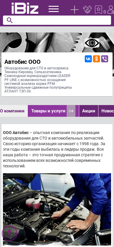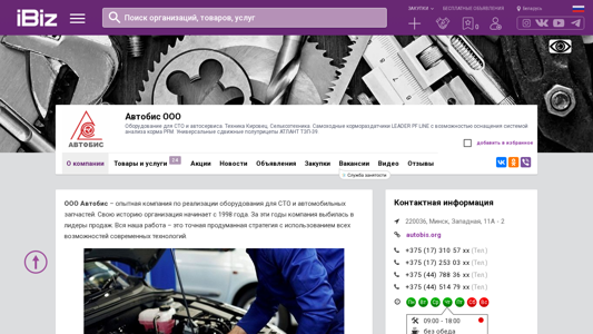 | AI-анализ | The portal m-autobis.ibiz.by is a Belarusian business-to-business website specializing in the sale of equipment for car repair shops and agricultural services. The offerings include machinery from Kirovec, Leader PF LINE self-propelled corn harvesters with the option of adding a feed analysis system PFM, and Atlant TZP-39 universal tilt semi-trailers. The website provides a location, address, and contact information for OOO Autobis, 220036, Minsk, Zapadnaya, 11A - 2. The catalog includes various types of equipment for car workshops such as cleaning equipment, tire mounting machines, auto lifts, engine repair equipment, fuel testing equipment, and battery charging equipment. The company has six branches and works with major domestic and international clients. The staff consists of experienced and qualified |