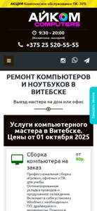 | AI-анализ | --- This online resource is dedicated to providing computer repair and maintenance services in Vitsebsk, Belarus. The company offers both in-house and on-site repairs for computers and laptops, with a focus on quick resolution of computer problems. The website lists several services, including installation of Windows, cleaning of laptops from dust, and replacement of thermopasts. The company also provides a free diagnosis for any repair work. The website also mentions discounts for comprehensive PC services. The contact number is provided, and the operating hours are listed as 9:30 AM to 8:00 PM, Monday to Saturday, with Sundays being a day off. The website also mentions services such as custom PC assembly, professional software installation, virus protection, and data recovery, all with specified prices. The domain name is pk-master.by. |