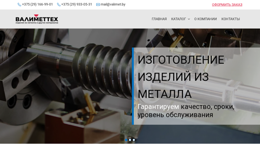 | SEO-описание | Изготовление металлоизделий в Минске – ООО "ВАЛИМЕТТЕХ". Минимальные сроки. Конструкторское бюро. Контроль качества. Изготовление по образцу, гибкие условия оплаты |