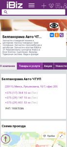 | Название / Заголовок | Белпанорама Авто ЧТУП - Запчасти к пожарной технике и цистернам. Насосы пожарные. Баки топливные. Запчасти к троллейбусам и автобусам. Запчасти к мостам RABA и ZF. Ремкомплекты суппортов Wabco и Knorr Bremse. Сцепление. Фильтры. Тормозная система. Фары и фонари. . 220113, Минск, , Лукьяновича, 10/7, офис 205 |