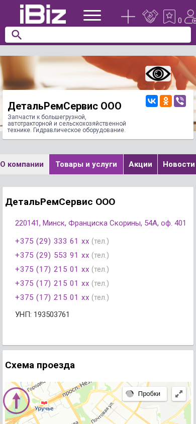 | Название / Заголовок | ДетальРемСервис ООО - Запчасти к большегрузной, автотракторной и сельскохозяйственной технике. Гидравлическое оборудование. . 220141, Минск, , Франциска Скорины, 54А, оф. 401 |