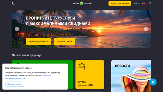 | AI-анализ | The web project "Autlet Travel" is a travel agency website in Belarusian language. The main page offers various travel services including tours, hotels, and flights with significant discounts. The site includes a chat feature, reverse call form, and a Perklasci translation service. Users can register and log in to access personal data and make bookings. The site features a FAQ section, legal information, press, reviews, and contact details. It also offers presentations for corporate clients and a buying agreement. The site supports multiple languages, including Russian, Kazakh, English, and others. Users can register and choose their country and language before accessing the site. The site offers exclusive deals such as Mriya Resort & SPA and a 5+1 offer for inviting five people and receiving a free abonement. Services can be booked with discounts on hot deals. |
