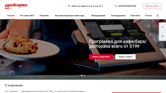 | AI-анализ | This online resource is a business automation program called iiko, focusing on the HoReCa sector, including restaurants, cafes, bars, and canteens, provided by OOO "Дракарис." The website offers information about the iiko program, its solutions for food delivery automation, equipment, technical support, and contacts. Users can learn more about iiko, its features, and pricing. The company, an accredited partner of AO "Айко" in Belarus, has over 10 years of experience in the HoReCa sector and aims to provide customized solutions for businesses, taking into account their specific needs. The website provides phone numbers for contact and offers articles for further information. |