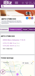 | AI-анализ | The portal avtostim.ibiz.by is a business-to-business marketplace offering parts and equipment for heavy-duty trucks and trailers of foreign manufacture. The company, Auto Stim OOO, is located in Minsk, Belarus at Babushkina 17-34, 35. The website provides a map for directions, contact telephone numbers, and the company's address. Keywords associated with the site include 'heavy-duty trucks', 'parts for sale', 'Belarus', 'Minsk', and various truck brands such as Volvo, Scania, Mercedes, MAN, DAF, and IVECO. The site offers new listings, a personal account area, and various categories for trucks and trailers, including cab components, pneumatic systems, towing equipment, and braking systems. Filters for oil, air |