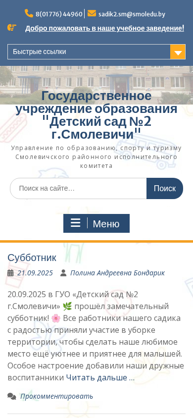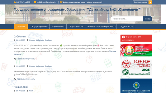 | Название / Заголовок | Государственное учреждение образования "Детский сад №2 г.Смолевичи" – Управление по образованию, спорту и туризму Смолевичского районного исполнительного комитета |