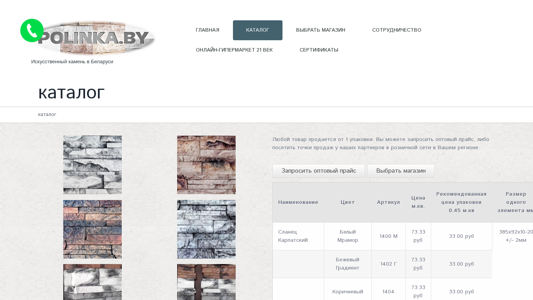 | AI-анализ | --- The website Polinka.by is a Belarusian online store specializing in the sale of artificial stone. Customers can browse the catalog, choose a store, and engage in partnership or shop online at the 21st century hypermarket. All products are available in single package quantities, and customers can request an opt-in wholesale price or visit partner retail locations in their region. The website lists various artificial stone products, their colors, names, recommended square meters prices, prices per package, and sizes. Products include Slate, Beige Gradient, Brown, and Gray Marble, as well as corner pieces. Additionally, there are various types of stone tiles, such as leather-like divans, and various sizes and shapes of hexagon tiles. All products can be purchased in single package quantities. |