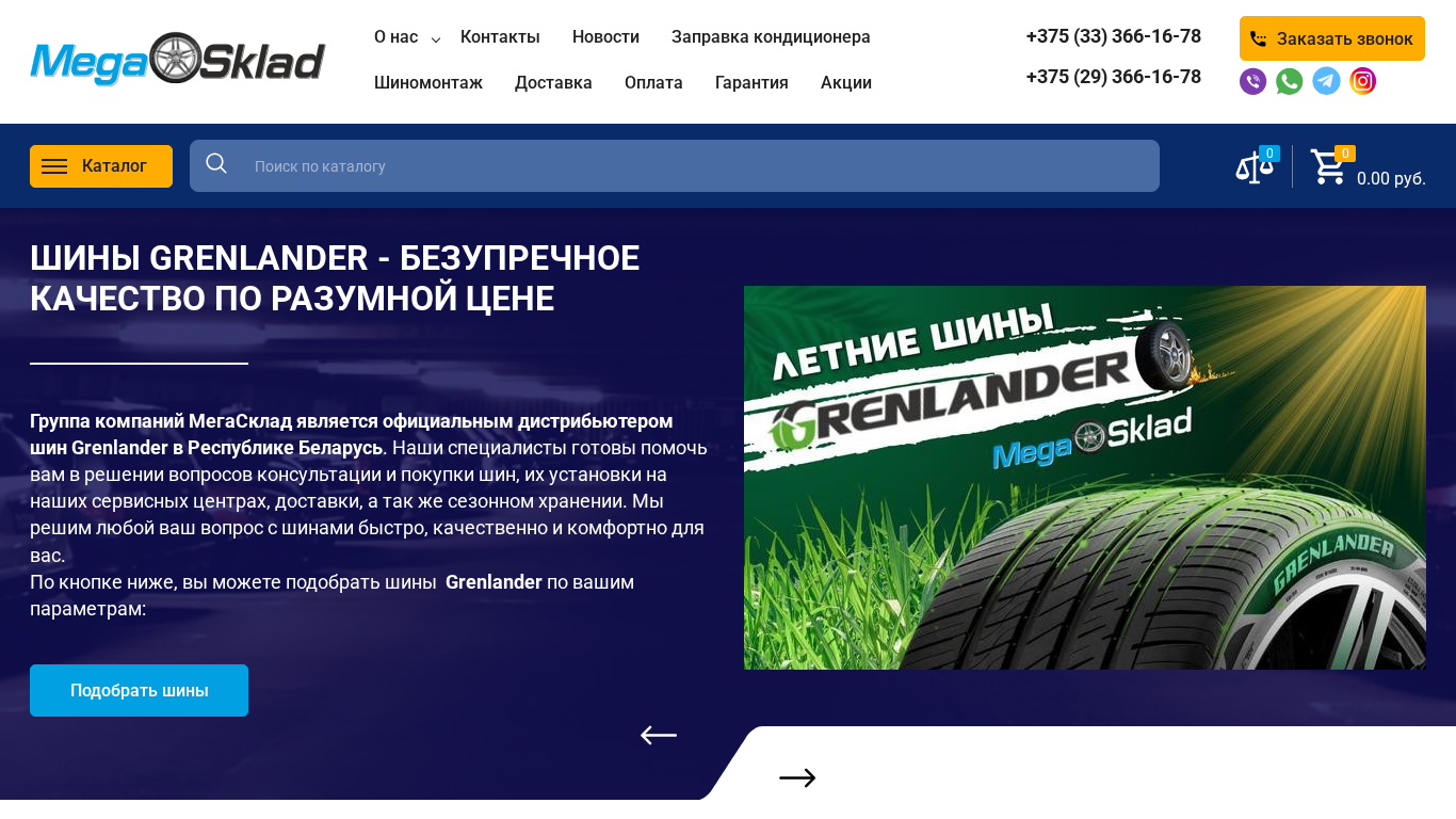 | SEO-описание | Купить автомобильные шины, диски и моторные масла в Минске ⭐ Стационарный и выездной монтаж ⭐ Доступные цены ✔️ Гарантия до 5 лет ✔️ Доставка до 2х дней по РБ ✔️ до 2х часов по Минску. |
