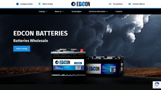 | AI-анализ | --- This online resource, titled "Buy EDCON Car Batteries – Auto Batteries Wholesale Price," offers visitors the opportunity to buy new car batteries from a supplier. The website appears to focus on the European Union market, with sections for partners to connect and a catalog of cars and trucks. The homepage includes information about EDCON batteries, their advantages, and a selection of topics such as technologies, technical information, safety regulations, and contacts for various European countries. The website also features news articles and information about upcoming events, such as Automechanika 2025. The batteries are described as a powerful starting force and a reliable power source for modern vehicle electronic systems and devices, suitable for passenger cars and commercial vehicles. The website includes sections for selecting batteries for passenger cars and trucks, as well as information on the advantages of choosing EDCON batteries, such as their high-end technical properties, extended service life, |