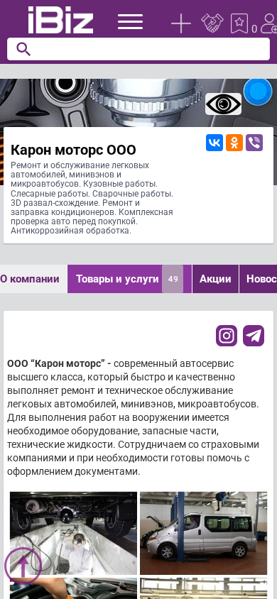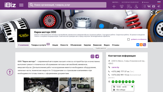 AI-анализ | --- The website is for Caron Motors OOO, a car repair and maintenance service located in Minsk, Belarus. They offer services for light vehicles, minivans, and microbuses, including bodywork, metalwork, welding, 3D analysis, conditioner repair, and pre-purchase inspections. They also provide anti-corrosion treatment. The company's address, contacts, and a map are available on the website. Caron Motors OOO uses modern equipment and keeps spare parts and technical fluids in stock. They collaborate with insurance companies and can help with document processing. The services they provide include bodywork repairs, metalwork, welding, 3D analysis, conditioner repair, pre-purchase inspections, and anti-corrosion treatment (dinitrol). They also offer tire mounting. If needed, they order spare parts and provide |