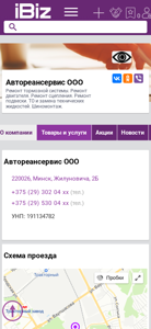 | AI-анализ | This website is an auto repair and maintenance service company based in Minsk, Belarus. The title and description of the website list the services offered, which include repair of the braking system, engine, transmission, suspension, and replacement of technical fluids, as well as tire mounting. The contact information, including two phone numbers and an address, is also provided on the website. The company's UNP number is 191134782. The website can be found in the categories of 'Auto Service and Repair' and 'Technical Assistance' in Yandex Business Directory. |