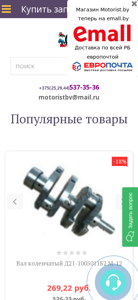 | AI-анализ | This portal is an e-commerce website specializing in the sale of spare parts for tractors MTZ, T-16, T-25, T-40 and loading machines Amkodor in Minsk, Belarus. The website offers a wide range of parts for various tractor models and loading machines, including engines, transmissions, hydraulic systems, and accessories. Customers can view the availability of parts in stock, add them to a shopping cart, and make a purchase. The website also includes sections for news, customer support, and payment and delivery information. Users can register and create a personal account to manage their orders and contact information. The website is operated by Motorist BY and can be reached at the phone number +375(25,29,44) 537-35-36 or by email at motoristby@mail.ru |