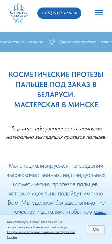 | SEO-описание | Самостоятельно производим косметические протезы пальцев на высочайшем уровне качества специально для граждан Беларуси. |
