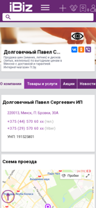 | AI-анализ | The portal is an e-commerce website for the sale of tires (winter, summer) and rims (cast, steel) in Minsk, Belarus, with delivery and warranty. The company, Dolgovechny Pavel Sergeevich IP, operates an internet store named 1t.by. The website provides a map for directions, contact numbers, and address: 220013, Minusinsk, P. Brovki, 30A. The company's opening hours are from 9:00 to 20:00 from Monday to Friday, and from 9:00 to 17:00 on Saturdays and Sundays. The website offers tires and rims for various transportation means, and has sections for news, announcements, vacancies, videos, and customer reviews on Vkontakte and Odnoklassn |