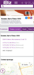 | AI-анализ | This website is for the Belarusian company Боникс Авто Плюс ООО, located in Минск at Монтажников, 9, каб. 72. The company specializes in the sale of motor oils and lubricants, specifically Gostovskie oils, as well as cooling and brake fluids, auto cosmetics, filters, and accumulators. The website includes a map and contact information with phone numbers for the company. The main product categories are listed as auto chemicals, auto cosmetics, auto parts and accessories, and accumulators and power elements. The website also features news, announcements, vacancies, and customer reviews on social media platforms such as VKontakte and Odnoklassniki. The company's Unified State Register number is 191281627. The website is |