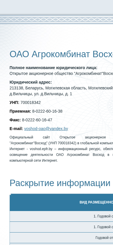 | SEO-лексика | скачать годовой отчет агрокомбинат восход оао пароль e-mail информации открытое акционерное общество адрес вильчицы унп 700018342 глобальной компьютерной сети интернет |