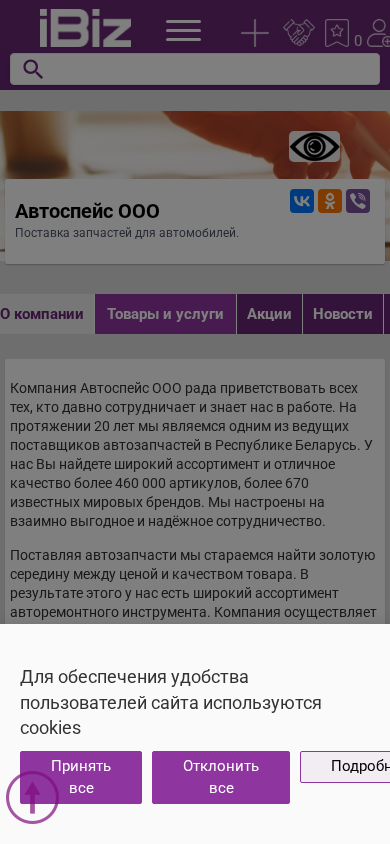 | Название / Заголовок | Автоспейс ООО - Поставка запчастей для автомобилей.. 220024, Минск, , Бабушкина, 27А |