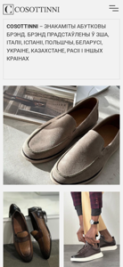 | AI-анализ | The portal cosottinni.by is dedicated to the brand Cosottini, a men's footwear company established in the USA, Italy, Spain, Poland, Belarus, Ukraine, Kazakhstan, Russia and other countries. The brand has been producing shoes for over 20 years, offering a wide range of men's footwear, including loafers, sneakers, dress shoes, lace-ups, sandals, boots and slippers. The brand's models are popular among a wide audience due to their simple lines, clear forms, and anatomical soles. The assortment includes trendy men's shoes with a classic, casual, or sporty style. Customers can also receive expert consultations on shoe size and fit, as well as utilize services for trying on shoes in the store or at home. Regular promotions and a loyalty program also bring customers closer to the brand |