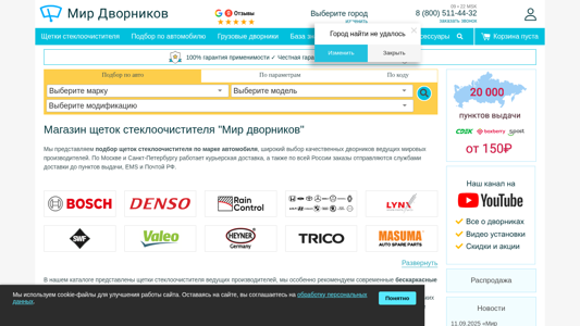 | SEO-описание | Интернет-магазин автомобильных щеток стеклоочистителя. Подберите качественные дворники для вашего авто онлайн. В наличии стеклоочистители Bosch, Valeo, Champion, Hella, Trico и другие. Гарантия качества, быстрая доставка по Москве, Санкт-Петербургу и всей России. |