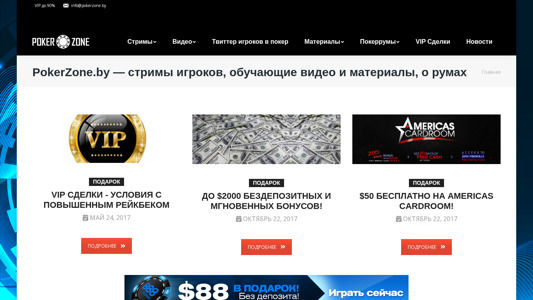 | Название / Заголовок | PokerZone - Бесплатные обучающие покер видео (ВОДы) и покерные стримы всех русскоязычных и зарубежных игроков |